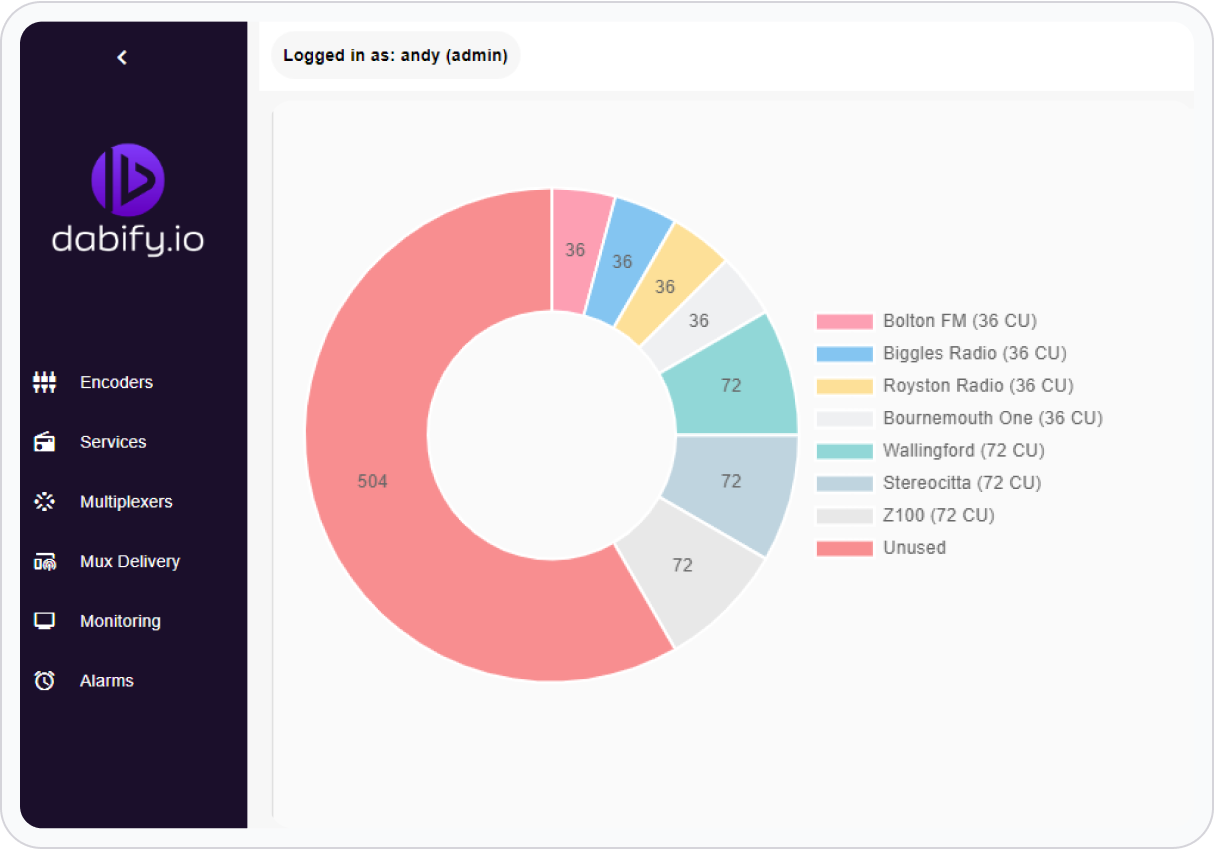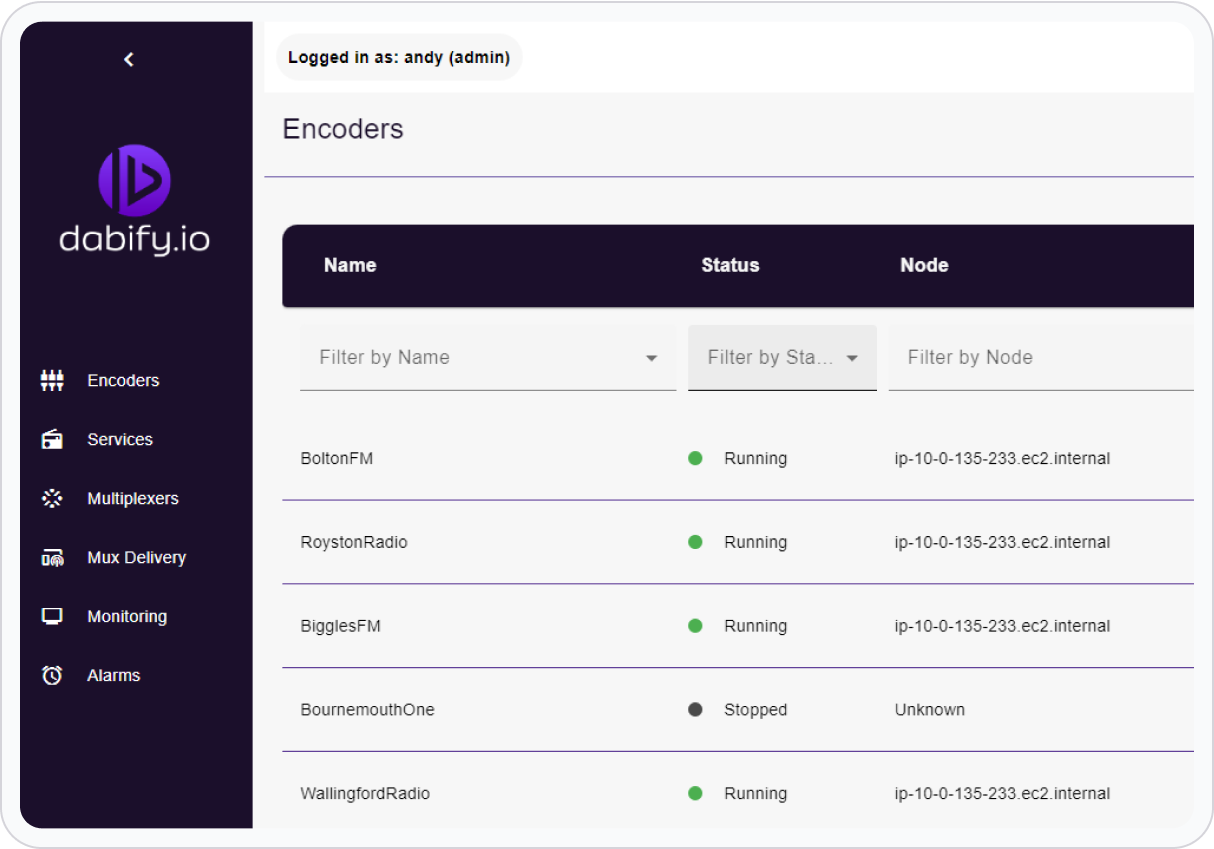 DABify is a software-as-a-service solution that simplifies how you run your DAB+ multiplex. By removing the need for physical hardware, we help you cut capital expenditure, reduce operating risk, and stay agile as your services grow. With real-time monitoring, expert support, and instant scalability, DABify is built for modern multiplex operators who want full control without the overhead.
